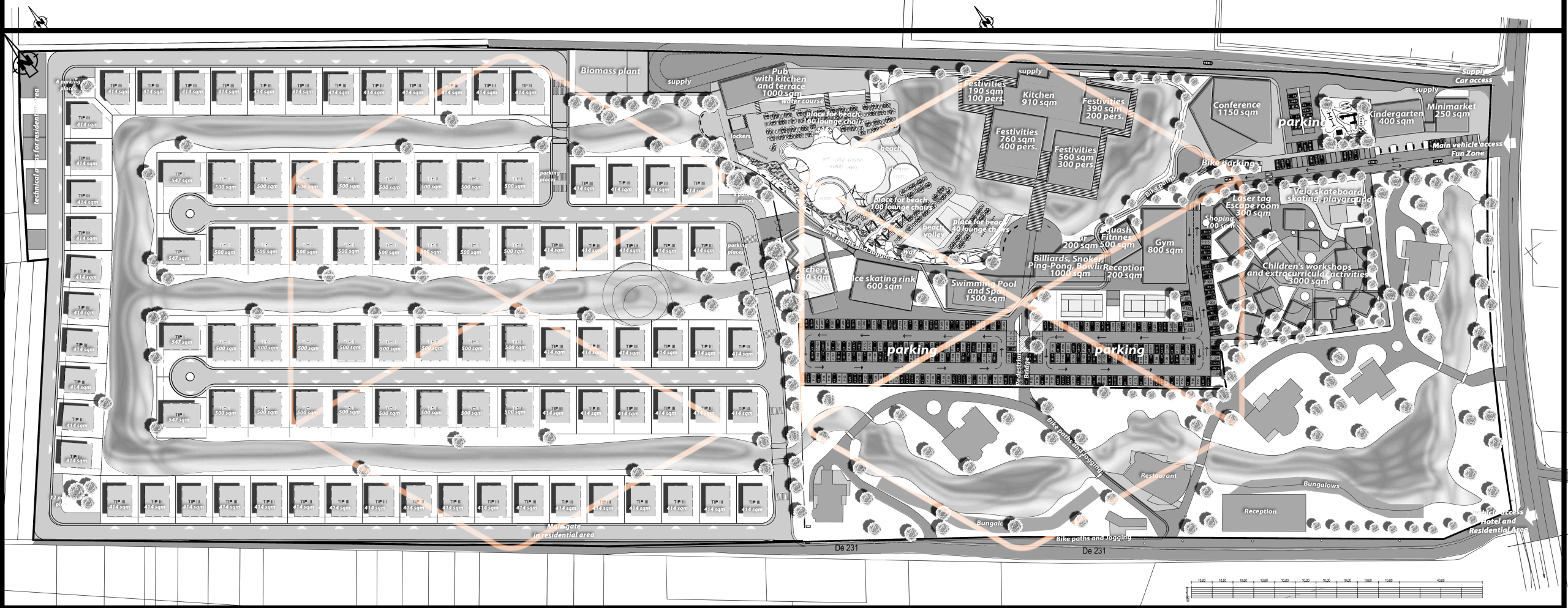 Conceptul acestui Masterplan a pornit de la ideea de a valorifica la maximum potentialul terenului, cu o suprafata de 18 ha. Propunerea consta in impartirea terenului in doua zone de interes: zona rezidentiala si zona de divertisment, care functioneaza independent, cu accese separate, dar comunica intre ele pentru a genera beneficii complementare.